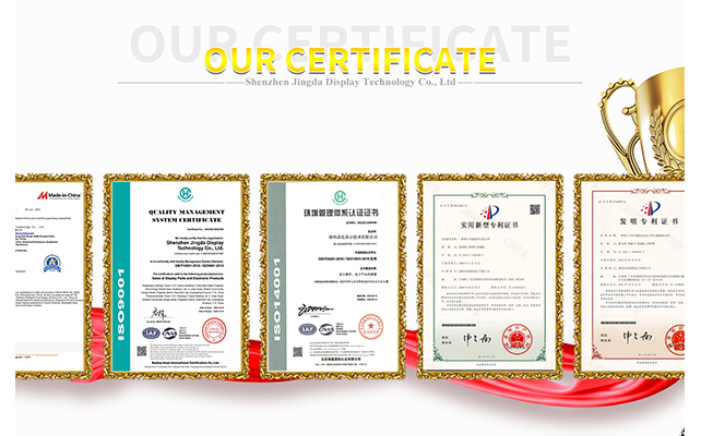शेन्ज़ेन जिंगडा डिस्प्ले टेक्नोलॉजी कं, लिमिटेड सतत विकास की अवधारणा का पालन करता है, हम अपने ग्राहकों को अधिक बेहतर गुणवत्ता और स्थिर सेवाएं प्रदान कर सकते हैं। कंपनी ने एक वैज्ञानिक और कठोर गुणवत्ता प्रबंधन प्रणाली स्थापित की है, हमने IS09001, SO14001 सिस्टम प्रमाणन पारित किया है।