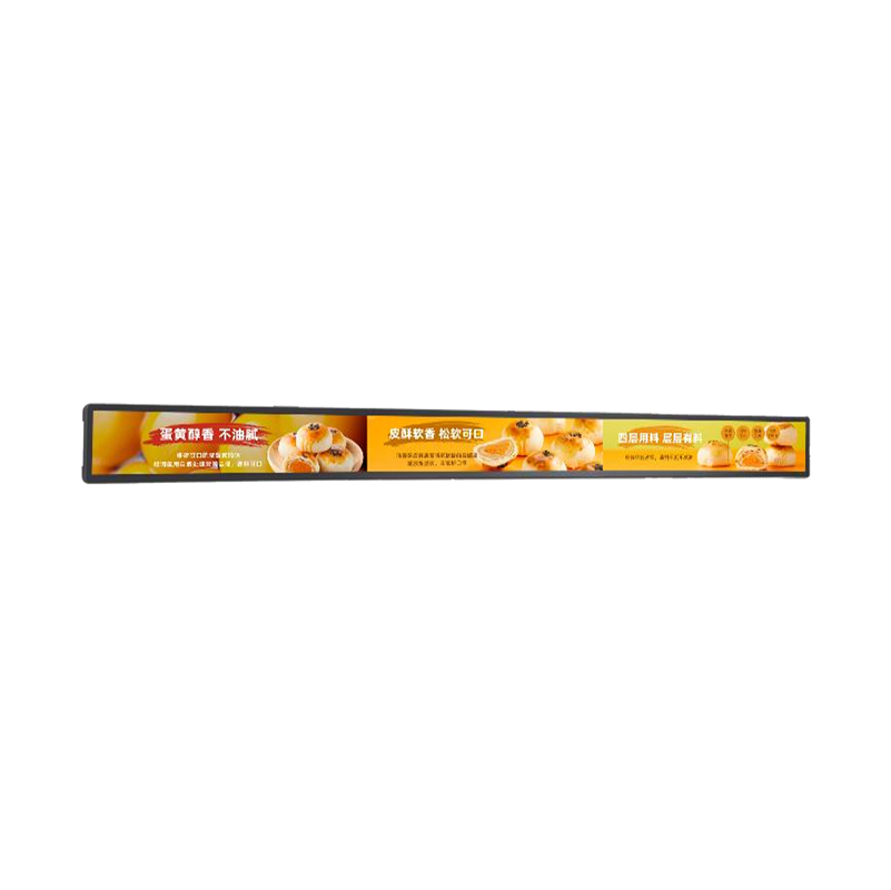 फैक्ट्री प्राइस कस्टमाइज्ड डिजिटल शेल्फ एज डिस्प्ले स्ट्रेचेड बार डिस्प्ले रिटेल स्टोर के लिए हाई रिज़ॉल्यूशन डिज़ाइन के साथ।